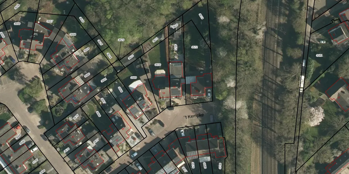 Het perceel waarop 't Kempke 52 staat heeft een oppervlakte van 405 m². Dit is een groot perceel. De perceeloppervlakte wordt geregistreerd door het Kadaster. Gedetailleerde informatie over de maten van dit perceel kunt u vinden in het rapport Kadastrale kaart met maatvoering van 't Kempke 52.