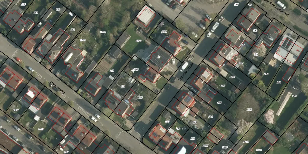 Het perceel waarop Trichterstraat 2 staat heeft een oppervlakte van 335 m². Dit is een groot perceel. De perceeloppervlakte wordt geregistreerd door het Kadaster. Gedetailleerde informatie over de maten van dit perceel kunt u vinden in het rapport Kadastrale kaart met maatvoering van Trichterstraat 2.