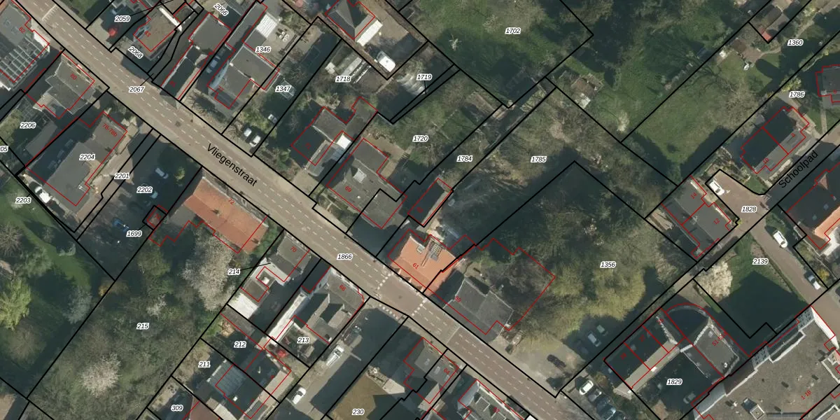 Het perceel waarop Vliegenstraat 63 staat heeft een oppervlakte van 401 m². Dit is een groot perceel. De perceeloppervlakte wordt geregistreerd door het Kadaster. Gedetailleerde informatie over de maten van dit perceel kunt u vinden in het rapport Kadastrale kaart met maatvoering van Vliegenstraat 63.