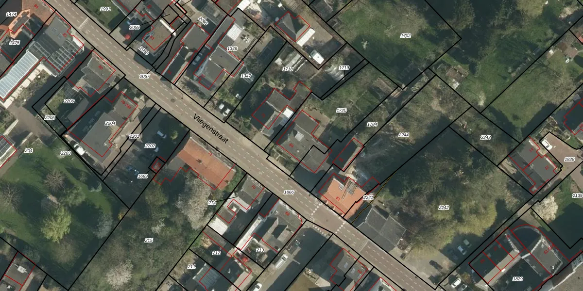 Het perceel waarop Vliegenstraat 69 staat heeft een oppervlakte van 685 m². Dit is een groot perceel. De perceeloppervlakte wordt geregistreerd door het Kadaster. Gedetailleerde informatie over de maten van dit perceel kunt u vinden in het rapport Kadastrale kaart met maatvoering van Vliegenstraat 69.