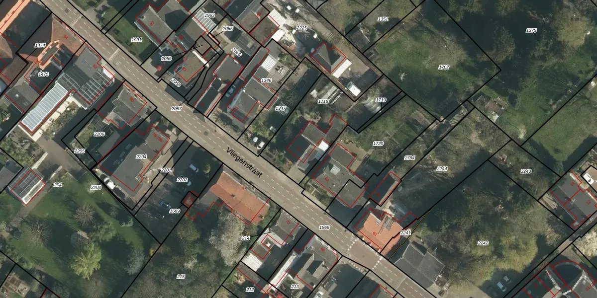 Het perceel waarop Vliegenstraat 71 staat heeft een oppervlakte van 718 m². Dit is een groot perceel. De perceeloppervlakte wordt geregistreerd door het Kadaster. Gedetailleerde informatie over de maten van dit perceel kunt u vinden in het rapport Kadastrale kaart met maatvoering van Vliegenstraat 71.