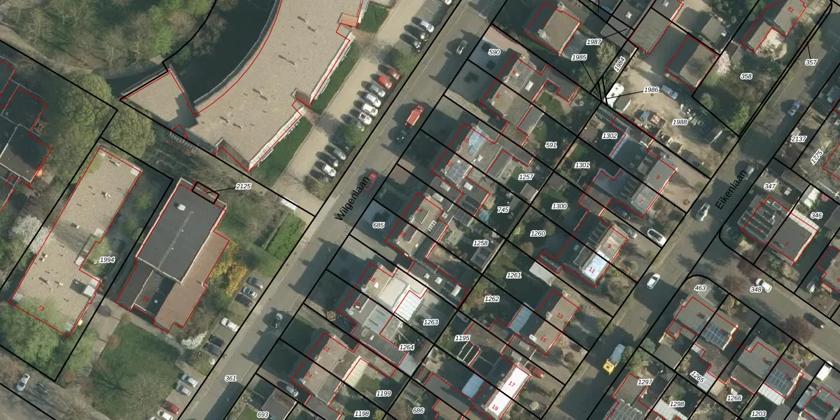 Het perceel waarop Wilgenlaan 14 staat heeft een oppervlakte van 317 m². Dit is een groot perceel. De perceeloppervlakte wordt geregistreerd door het Kadaster. Gedetailleerde informatie over de maten van dit perceel kunt u vinden in het rapport Kadastrale kaart met maatvoering van Wilgenlaan 14.