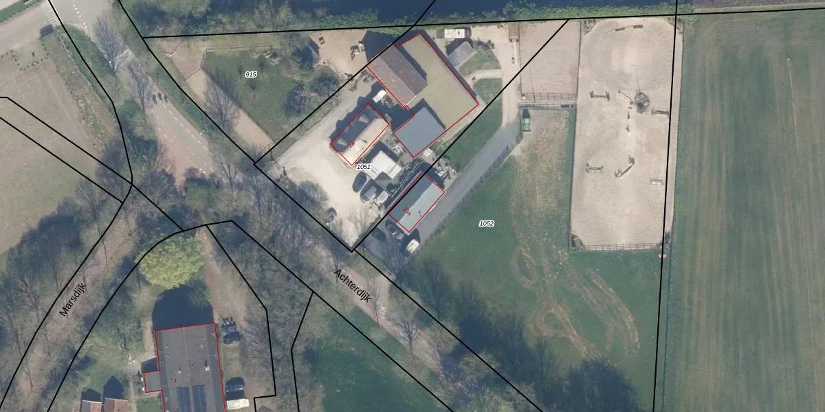 Het perceel waarop Achterdijk 23-a staat heeft een oppervlakte van 5260 m². Dit is een zeer groot perceel. De perceeloppervlakte wordt geregistreerd door het Kadaster. Gedetailleerde informatie over de maten van dit perceel kunt u vinden in het rapport Kadastrale kaart met maatvoering van Achterdijk 23-a.