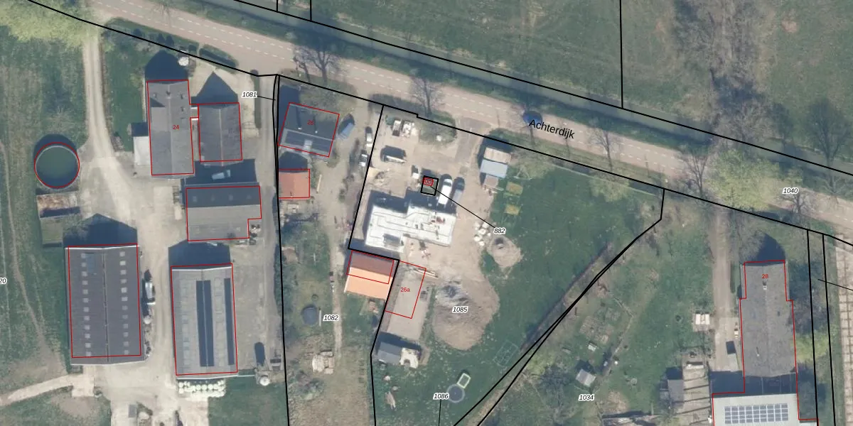 Het perceel waarop Achterdijk 26-a staat heeft een oppervlakte van 3221 m². Dit is een zeer groot perceel. De perceeloppervlakte wordt geregistreerd door het Kadaster. Gedetailleerde informatie over de maten van dit perceel kunt u vinden in het rapport Kadastrale kaart met maatvoering van Achterdijk 26-a.
