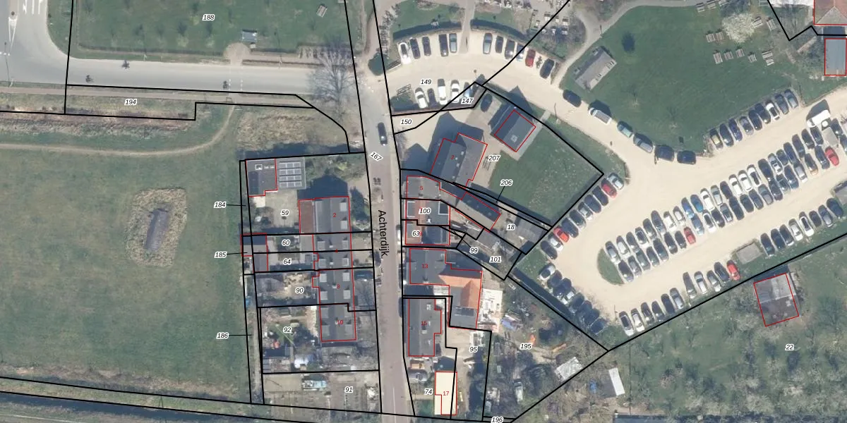 Het perceel waarop Achterdijk 7 staat heeft een oppervlakte van 96 m². Dit is een klein perceel. De perceeloppervlakte wordt geregistreerd door het Kadaster. Gedetailleerde informatie over de maten van dit perceel kunt u vinden in het rapport Kadastrale kaart met maatvoering van Achterdijk 7.