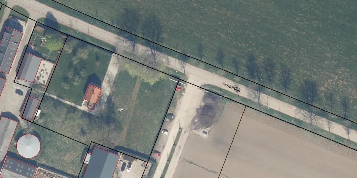 Het perceel waarop Achterdijk 8002 staat heeft een oppervlakte van 4836 m². Dit is een zeer groot perceel. De perceeloppervlakte wordt geregistreerd door het Kadaster. Gedetailleerde informatie over de maten van dit perceel kunt u vinden in het rapport Kadastrale kaart met maatvoering van Achterdijk 8002.