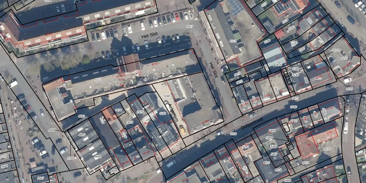 Het perceel waarop Dorpsstraat 34-f staat heeft een oppervlakte van 820 m². Dit is een groot perceel. De perceeloppervlakte wordt geregistreerd door het Kadaster. Gedetailleerde informatie over de maten van dit perceel kunt u vinden in het rapport Kadastrale kaart met maatvoering van Dorpsstraat 34-f.