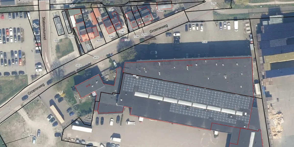 Het perceel waarop Groeneweg 21-l staat heeft een oppervlakte van 7120 m². Dit is een zeer groot perceel. De perceeloppervlakte wordt geregistreerd door het Kadaster. Gedetailleerde informatie over de maten van dit perceel kunt u vinden in het rapport Kadastrale kaart met maatvoering van Groeneweg 21-l.