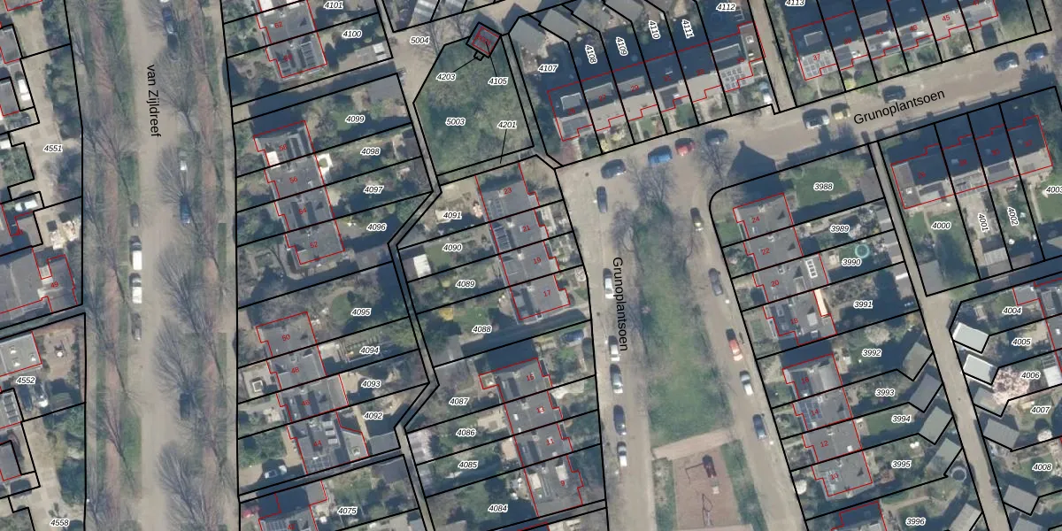 Het perceel waarop Grunoplantsoen 19 staat heeft een oppervlakte van 205 m². Dit is een middelgroot perceel. De perceeloppervlakte wordt geregistreerd door het Kadaster. Gedetailleerde informatie over de maten van dit perceel kunt u vinden in het rapport Kadastrale kaart met maatvoering van Grunoplantsoen 19.