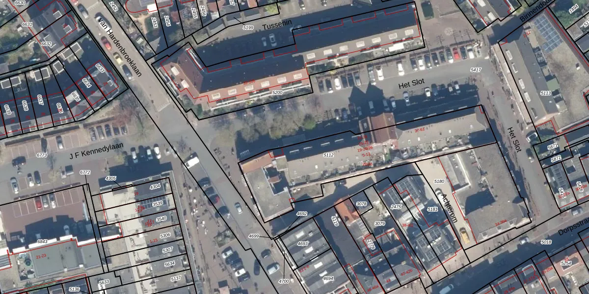 Het perceel waarop Het Slot 37 staat heeft een oppervlakte van 1325 m². Dit is een zeer groot perceel. De perceeloppervlakte wordt geregistreerd door het Kadaster. Gedetailleerde informatie over de maten van dit perceel kunt u vinden in het rapport Kadastrale kaart met maatvoering van Het Slot 37.