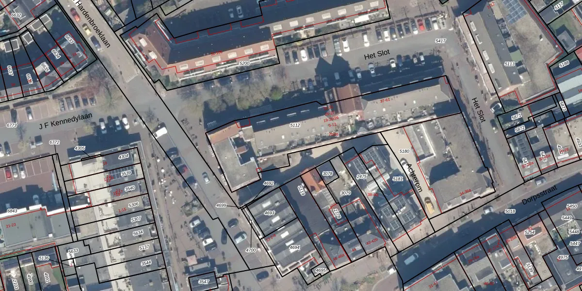 Het perceel waarop Het Slot 53 staat heeft een oppervlakte van 1325 m². Dit is een zeer groot perceel. De perceeloppervlakte wordt geregistreerd door het Kadaster. Gedetailleerde informatie over de maten van dit perceel kunt u vinden in het rapport Kadastrale kaart met maatvoering van Het Slot 53.