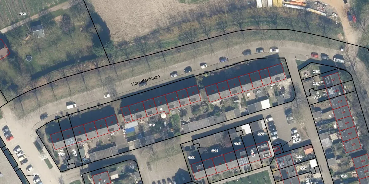 Hoenderiklaan 17 is gelegen op kadastraal perceel BNK02A6236. Deze kadastrale aanduiding is uniek en wordt gebruikt door het Kadaster om eigendomsrechten en andere zakelijke rechten vast te leggen. Het perceel maakt onderdeel uit van de kadastrale gemeente Bunnik.