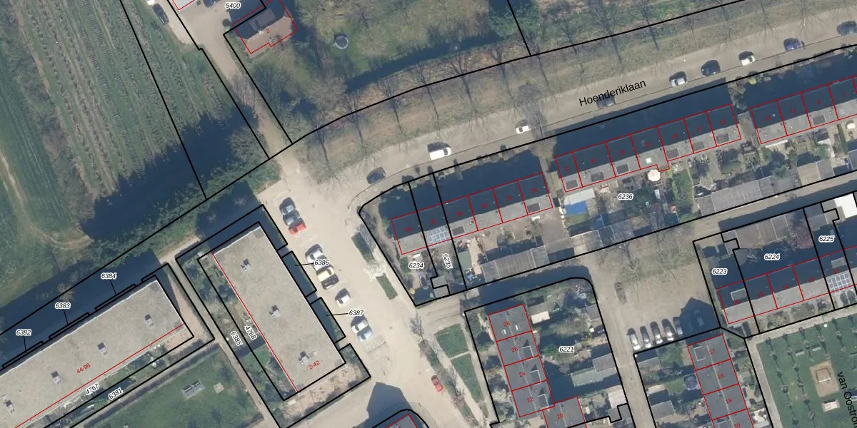 Hoenderiklaan 37 is gelegen op kadastraal perceel BNK02A6235. Deze kadastrale aanduiding is uniek en wordt gebruikt door het Kadaster om eigendomsrechten en andere zakelijke rechten vast te leggen. Het perceel maakt onderdeel uit van de kadastrale gemeente Bunnik.