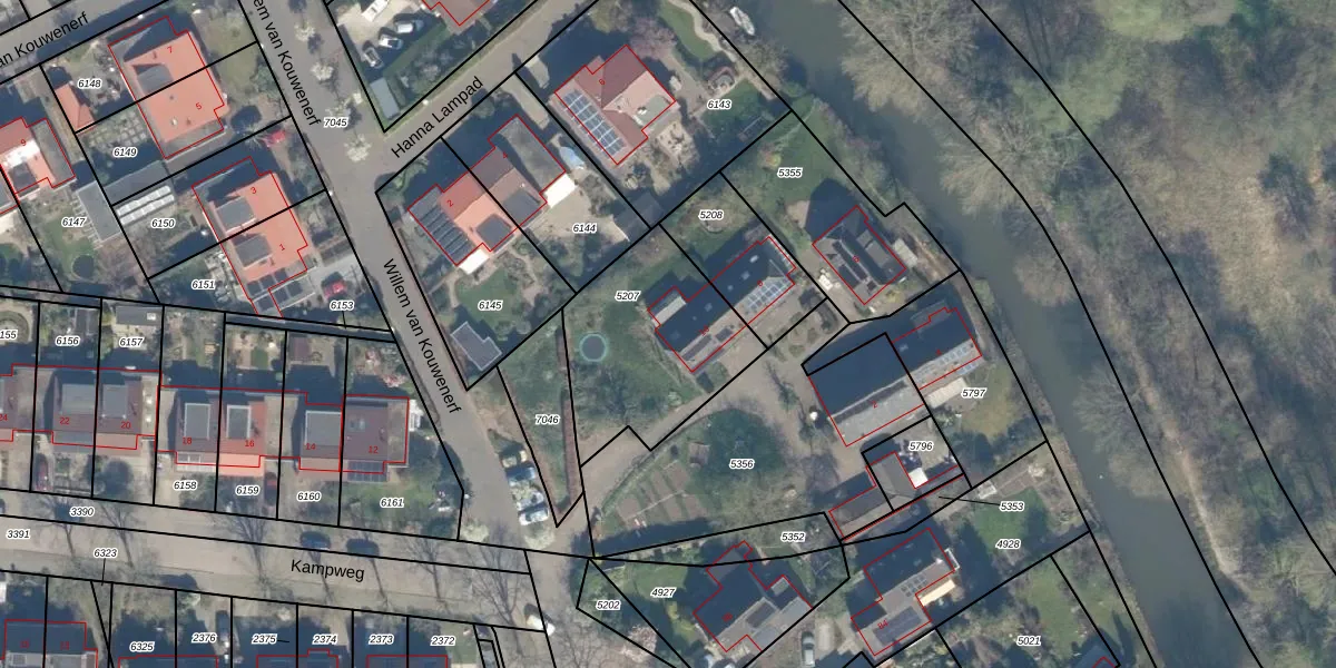 Het perceel waarop Kampweg 10 staat heeft een oppervlakte van 650 m². Dit is een groot perceel. De perceeloppervlakte wordt geregistreerd door het Kadaster. Gedetailleerde informatie over de maten van dit perceel kunt u vinden in het rapport Kadastrale kaart met maatvoering van Kampweg 10.