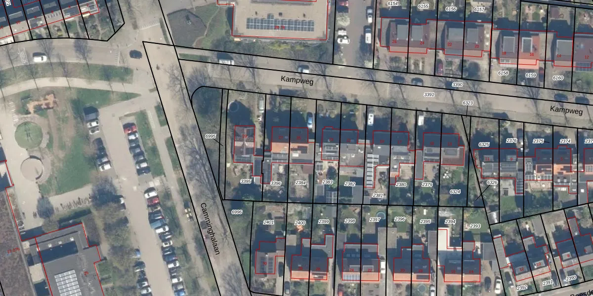 Het perceel waarop Kampweg 25 staat heeft een oppervlakte van 305 m². Dit is een groot perceel. De perceeloppervlakte wordt geregistreerd door het Kadaster. Gedetailleerde informatie over de maten van dit perceel kunt u vinden in het rapport Kadastrale kaart met maatvoering van Kampweg 25.