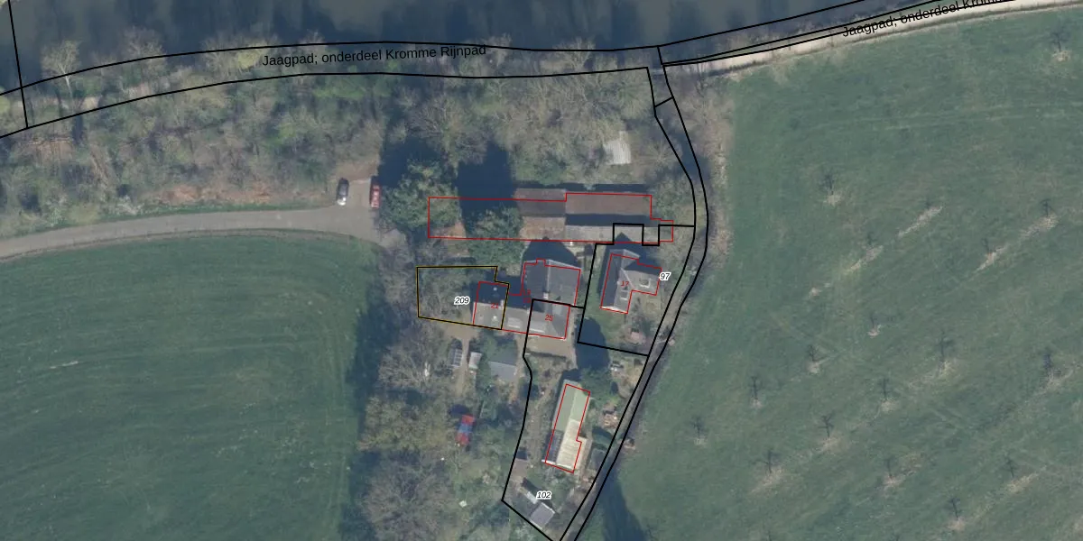 Het adres ligt op het perceel BNK02-D-208, dat zich in de kadastrale gemeente Bunnik bevindt. De oppervlakte van het perceel is 4,3 ha. Dat is groter dan gemiddeld in Bunnik, waar de gemiddelde perceeloppervlakte op 2823,37 m² ligt. Het grootste perceel in de kadastrale gemeente is 42,1 ha. Het kleinste perceel heeft een oppervlakte van 0 m². Op het perceel zijn 2 adressen aanwezig. De huidige grenzen van het perceel zijn digitaal in de Basisregistratie Kadaster (BRK) geregistreerd op 02-02-2026.