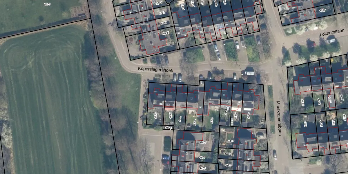 Koperslagershoek 13 is gelegen op kadastraal perceel BNK02A4480. Deze kadastrale aanduiding is uniek en wordt gebruikt door het Kadaster om eigendomsrechten en andere zakelijke rechten vast te leggen. Het perceel maakt onderdeel uit van de kadastrale gemeente Bunnik.