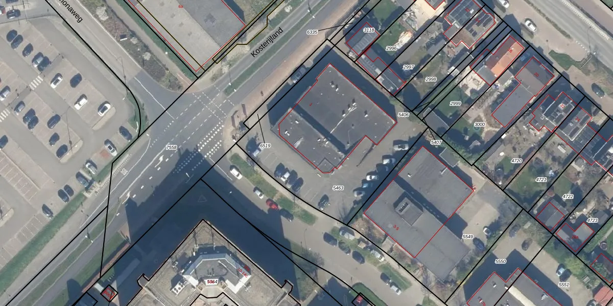 Het perceel waarop Kosterijland 1 staat heeft een oppervlakte van 1890 m². Dit is een zeer groot perceel. De perceeloppervlakte wordt geregistreerd door het Kadaster. Gedetailleerde informatie over de maten van dit perceel kunt u vinden in het rapport Kadastrale kaart met maatvoering van Kosterijland 1.
