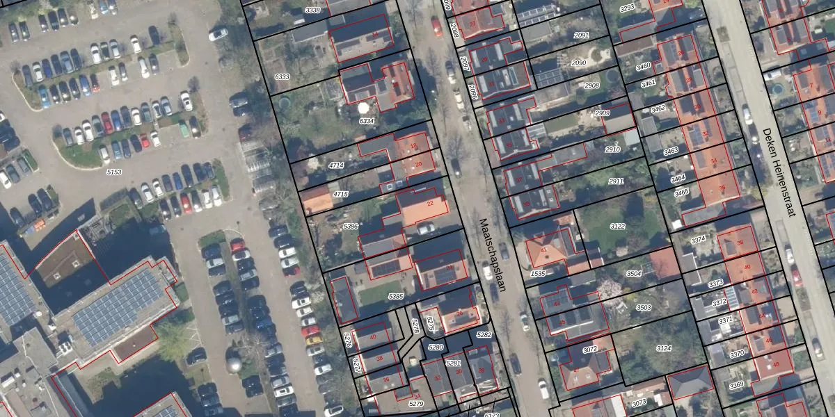 Het perceel waarop Maatschapslaan 22 staat heeft een oppervlakte van 478 m². Dit is een groot perceel. De perceeloppervlakte wordt geregistreerd door het Kadaster. Gedetailleerde informatie over de maten van dit perceel kunt u vinden in het rapport Kadastrale kaart met maatvoering van Maatschapslaan 22.
