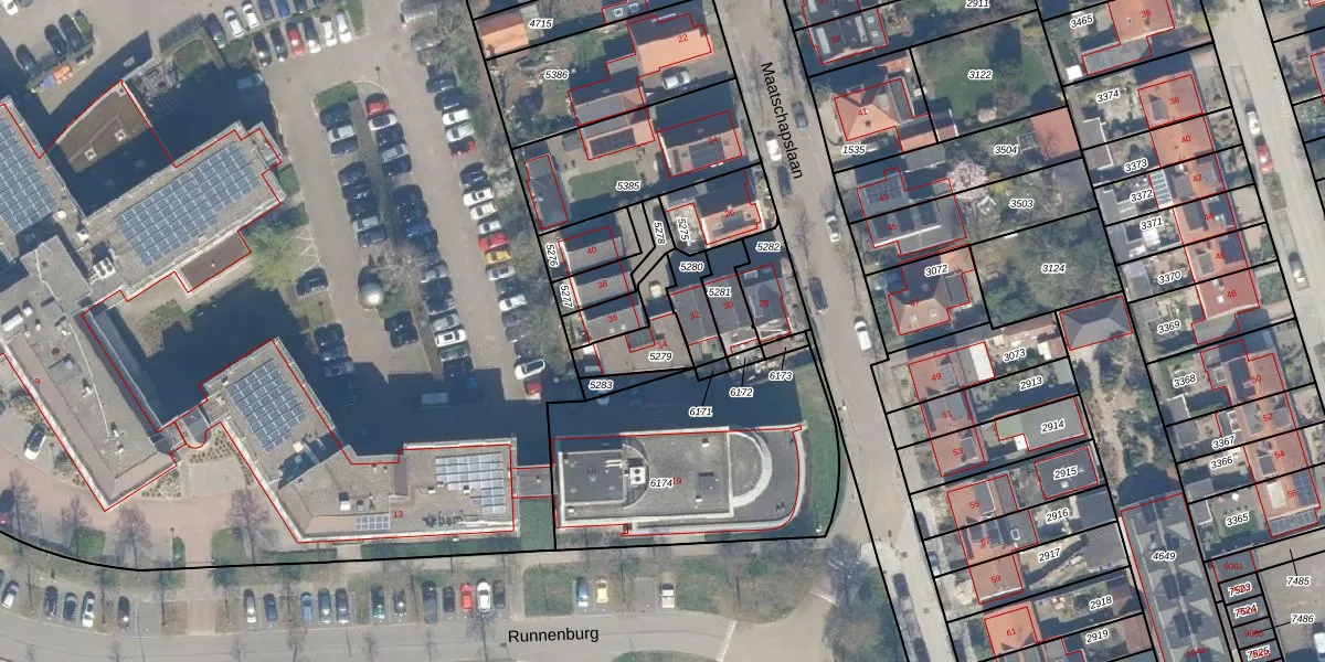 Maatschapslaan 34 is gelegen op kadastraal perceel BNK02A5279. Deze kadastrale aanduiding is uniek en wordt gebruikt door het Kadaster om eigendomsrechten en andere zakelijke rechten vast te leggen. Het perceel maakt onderdeel uit van de kadastrale gemeente Bunnik.