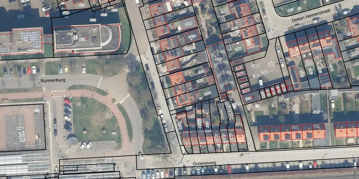 Gebruik de zoekbalk of klik op een perceel voor informatie over de adressen binnen dit perceel.