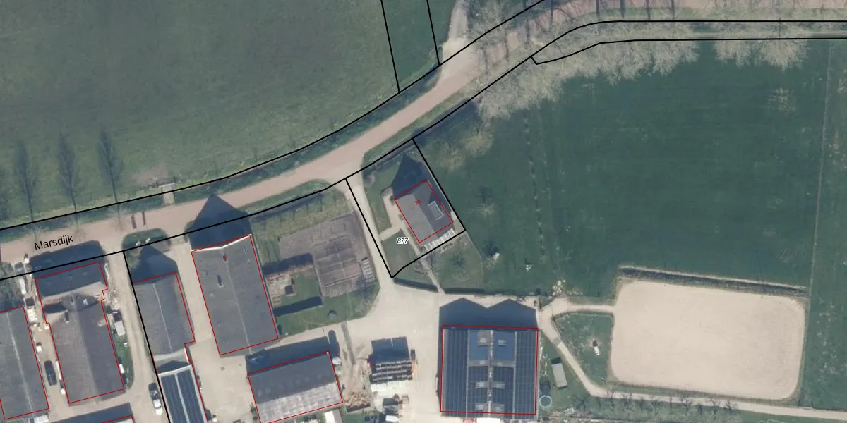 Het perceel waarop Marsdijk 3-a staat heeft een oppervlakte van 567 m². Dit is een groot perceel. De perceeloppervlakte wordt geregistreerd door het Kadaster. Gedetailleerde informatie over de maten van dit perceel kunt u vinden in het rapport Kadastrale kaart met maatvoering van Marsdijk 3-a.