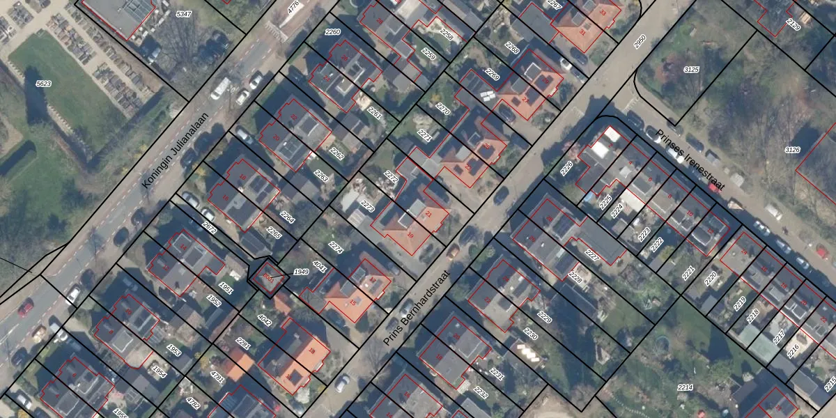 Prins Bernhardstraat 21 is gelegen op kadastraal perceel BNK02A2272. Deze kadastrale aanduiding is uniek en wordt gebruikt door het Kadaster om eigendomsrechten en andere zakelijke rechten vast te leggen. Het perceel maakt onderdeel uit van de kadastrale gemeente Bunnik.