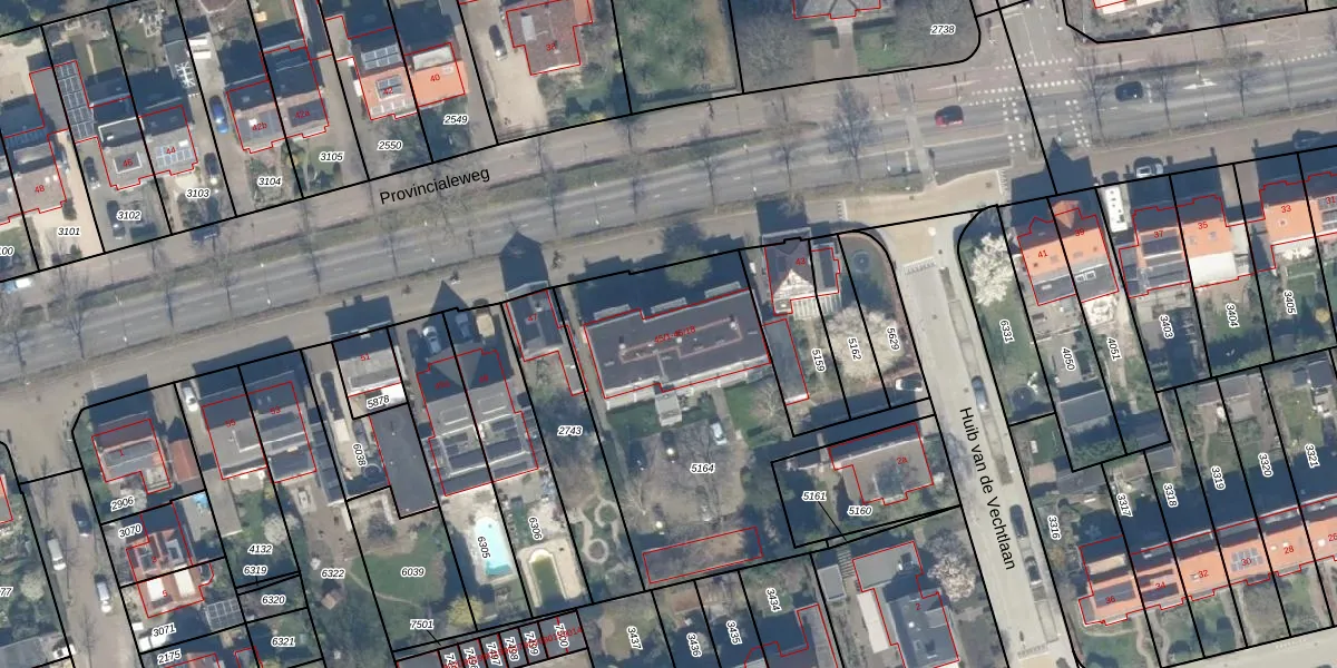 Het perceel waarop Provincialeweg 45-16 staat heeft een oppervlakte van 1340 m². Dit is een zeer groot perceel. De perceeloppervlakte wordt geregistreerd door het Kadaster. Gedetailleerde informatie over de maten van dit perceel kunt u vinden in het rapport Kadastrale kaart met maatvoering van Provincialeweg 45-16.