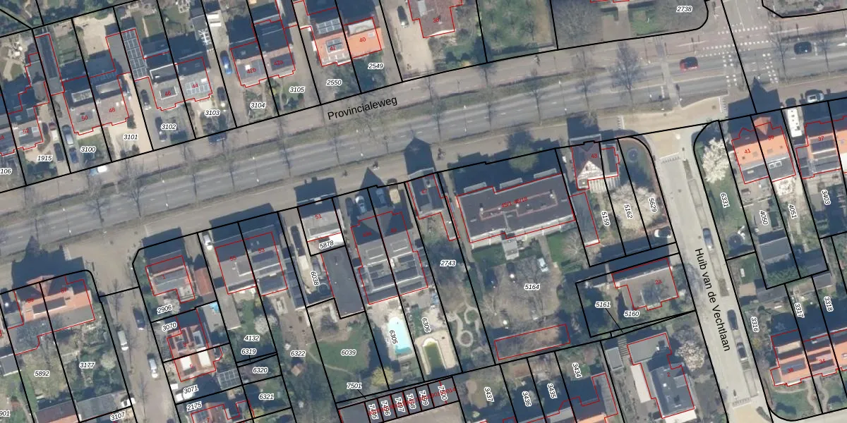 Het perceel waarop Provincialeweg 47 staat heeft een oppervlakte van 379 m². Dit is een groot perceel. De perceeloppervlakte wordt geregistreerd door het Kadaster. Gedetailleerde informatie over de maten van dit perceel kunt u vinden in het rapport Kadastrale kaart met maatvoering van Provincialeweg 47.
