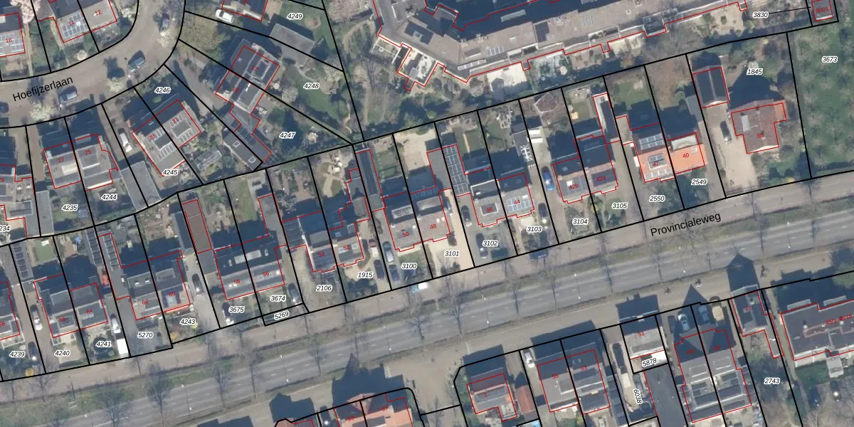 Het perceel waarop Provincialeweg 48 staat heeft een oppervlakte van 356 m². Dit is een groot perceel. De perceeloppervlakte wordt geregistreerd door het Kadaster. Gedetailleerde informatie over de maten van dit perceel kunt u vinden in het rapport Kadastrale kaart met maatvoering van Provincialeweg 48.
