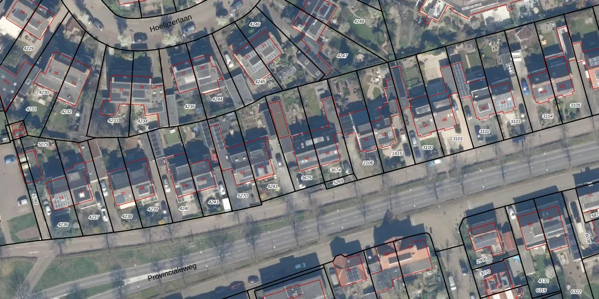 Het perceel waarop Provincialeweg 58 staat heeft een oppervlakte van 364 m². Dit is een groot perceel. De perceeloppervlakte wordt geregistreerd door het Kadaster. Gedetailleerde informatie over de maten van dit perceel kunt u vinden in het rapport Kadastrale kaart met maatvoering van Provincialeweg 58.