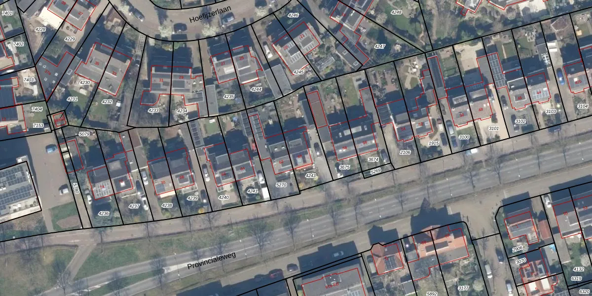 Het perceel waarop Provincialeweg 60 staat heeft een oppervlakte van 377 m². Dit is een groot perceel. De perceeloppervlakte wordt geregistreerd door het Kadaster. Gedetailleerde informatie over de maten van dit perceel kunt u vinden in het rapport Kadastrale kaart met maatvoering van Provincialeweg 60.