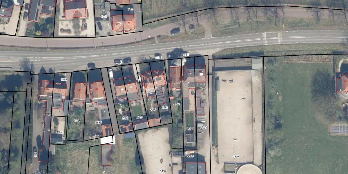 Gebruik de zoekbalk of klik op een perceel voor informatie over de adressen binnen dit perceel.