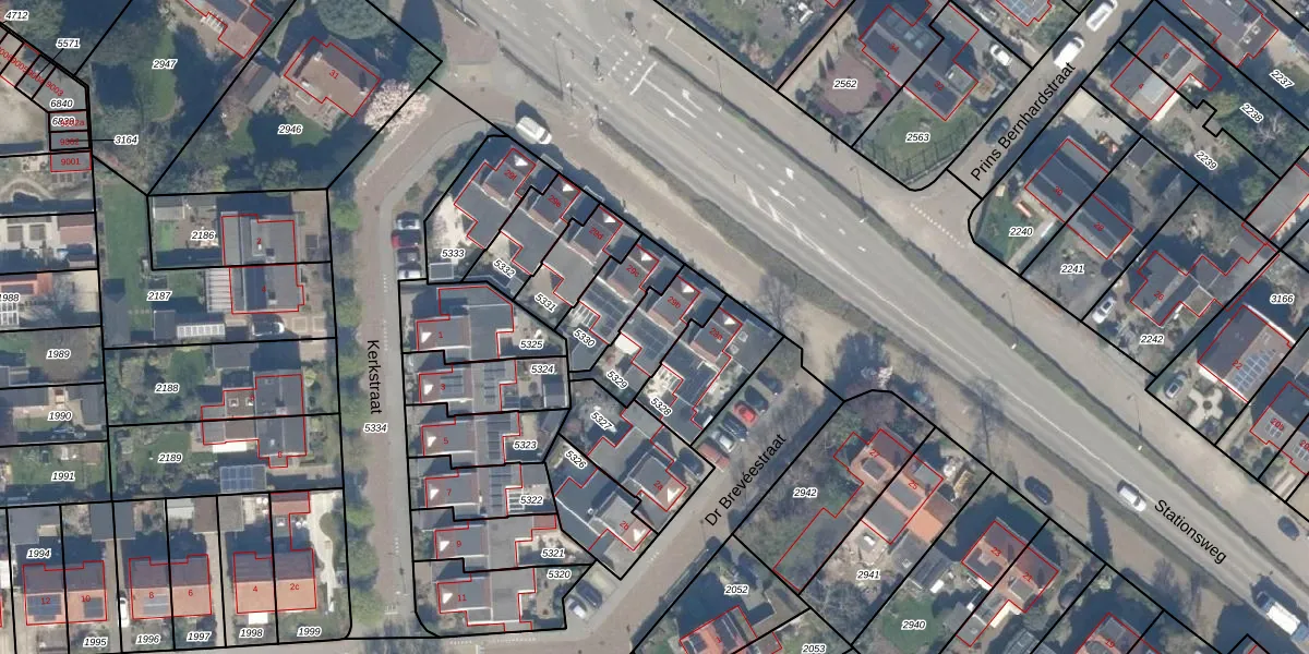 Gebruik de zoekbalk of klik op een perceel voor informatie over de adressen binnen dit perceel.