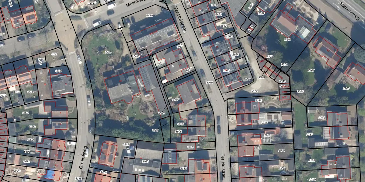 Het perceel waarop Ter Hulstraat 9 staat heeft een oppervlakte van 357 m². Dit is een groot perceel. De perceeloppervlakte wordt geregistreerd door het Kadaster. Gedetailleerde informatie over de maten van dit perceel kunt u vinden in het rapport Kadastrale kaart met maatvoering van Ter Hulstraat 9.