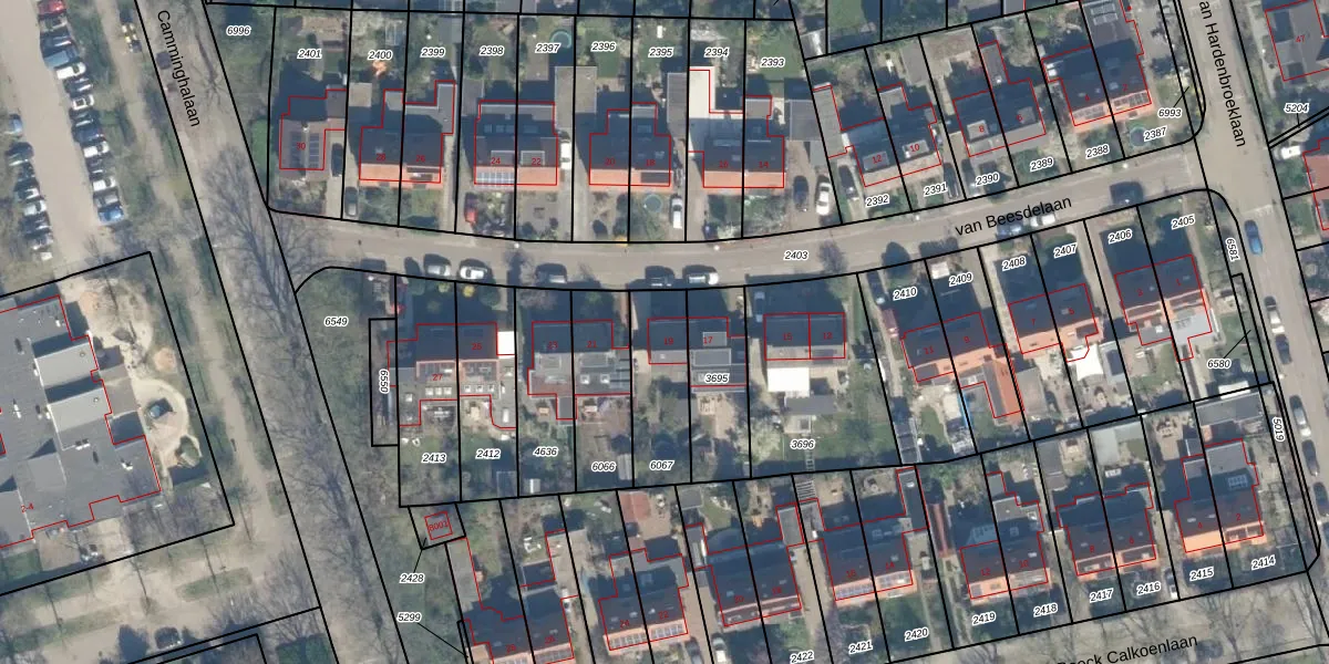 van Beesdelaan 19 is gelegen op kadastraal perceel BNK02A6067. Deze kadastrale aanduiding is uniek en wordt gebruikt door het Kadaster om eigendomsrechten en andere zakelijke rechten vast te leggen. Het perceel maakt onderdeel uit van de kadastrale gemeente Bunnik.