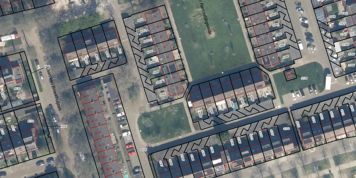 Het perceel waarop van Riemsdijkgaarde 22 staat heeft een oppervlakte van 199 m². Dit is een middelgroot perceel. De perceeloppervlakte wordt geregistreerd door het Kadaster. Gedetailleerde informatie over de maten van dit perceel kunt u vinden in het rapport Kadastrale kaart met maatvoering van van Riemsdijkgaarde 22.
