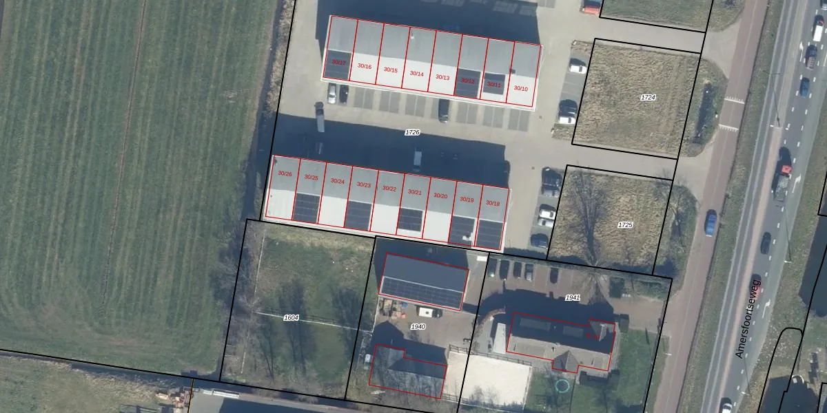 Amersfoortseweg 30-21 is gelegen op kadastraal perceel BST01N1726. Deze kadastrale aanduiding is uniek en wordt gebruikt door het Kadaster om eigendomsrechten en andere zakelijke rechten vast te leggen. Het perceel maakt onderdeel uit van de kadastrale gemeente Bunschoten.