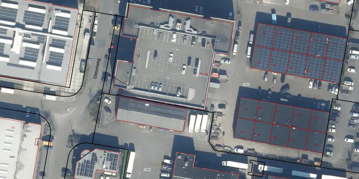 Het perceel waarop Einsteinweg 33-d staat heeft een oppervlakte van 1,3 ha. Dit is een zeer groot perceel. De perceeloppervlakte wordt geregistreerd door het Kadaster. Gedetailleerde informatie over de maten van dit perceel kunt u vinden in het rapport Kadastrale kaart met maatvoering van Einsteinweg 33-d.