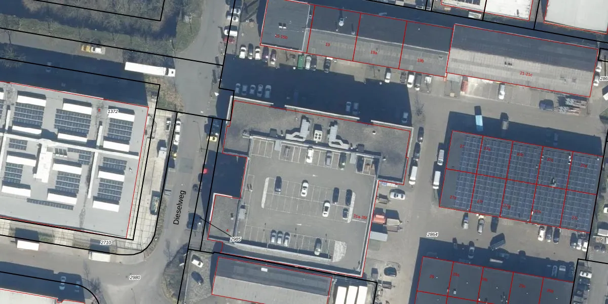 Het perceel waarop Einsteinweg 33-e staat heeft een oppervlakte van 1,3 ha. Dit is een zeer groot perceel. De perceeloppervlakte wordt geregistreerd door het Kadaster. Gedetailleerde informatie over de maten van dit perceel kunt u vinden in het rapport Kadastrale kaart met maatvoering van Einsteinweg 33-e.