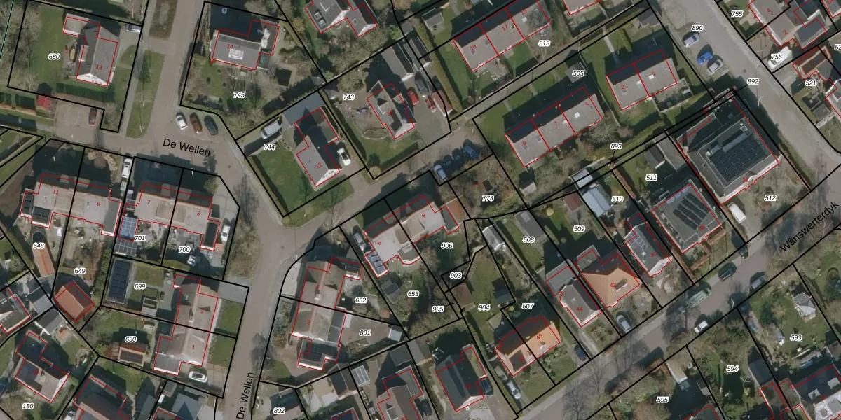 De Wellen 8 is gelegen op kadastraal perceel BJA00G906. Deze kadastrale aanduiding is uniek en wordt gebruikt door het Kadaster om eigendomsrechten en andere zakelijke rechten vast te leggen. Het perceel maakt onderdeel uit van de kadastrale gemeente Blija.
