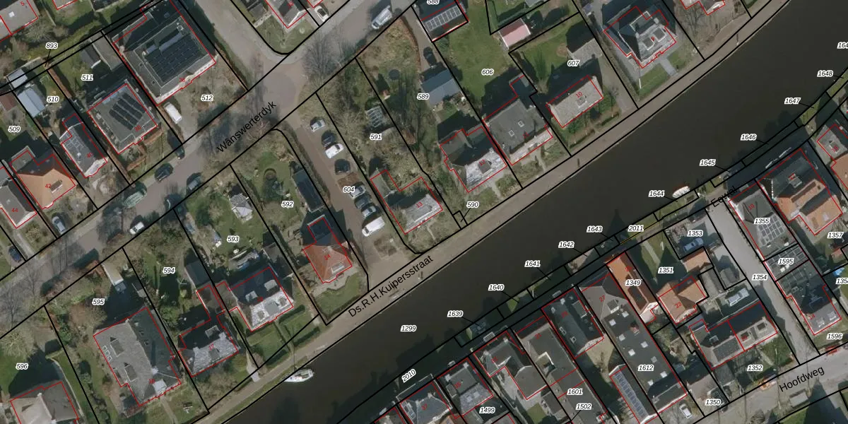 Het perceel waarop Ds.R.H.Kuipersstraat 13 staat heeft een oppervlakte van 581 m². Dit is een groot perceel. De perceeloppervlakte wordt geregistreerd door het Kadaster. Gedetailleerde informatie over de maten van dit perceel kunt u vinden in het rapport Kadastrale kaart met maatvoering van Ds.R.H.Kuipersstraat 13.