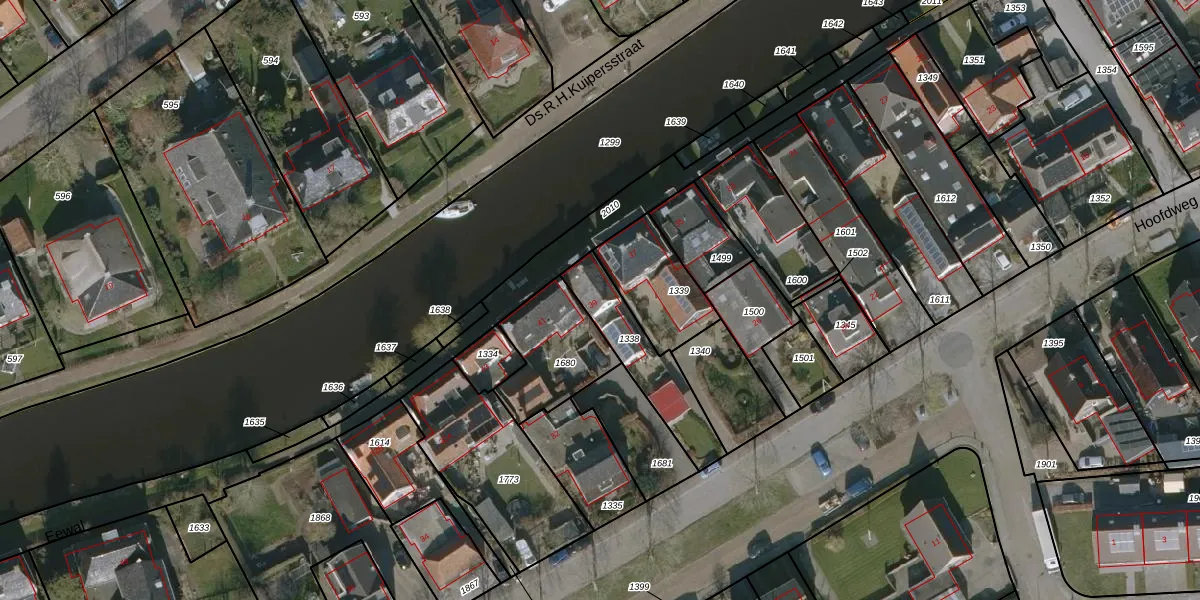 Het perceel waarop Eewal 39 staat heeft een oppervlakte van 259 m². Dit is een middelgroot perceel. De perceeloppervlakte wordt geregistreerd door het Kadaster. Gedetailleerde informatie over de maten van dit perceel kunt u vinden in het rapport Kadastrale kaart met maatvoering van Eewal 39.