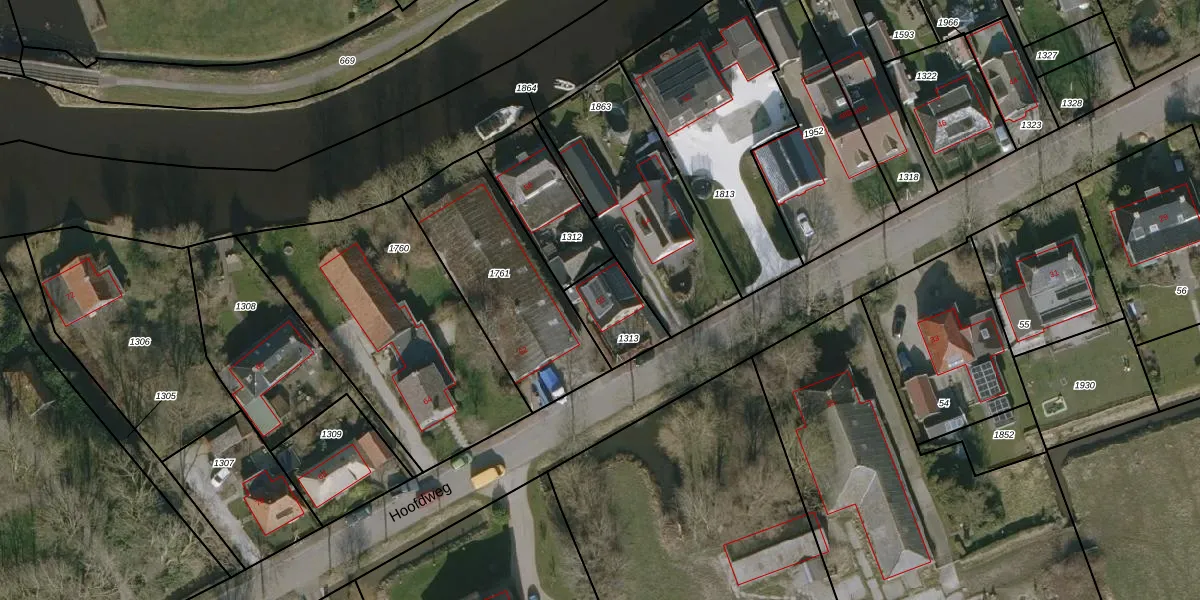 Het perceel waarop Hoofdweg 60 staat heeft een oppervlakte van 166 m². Dit is een middelgroot perceel. De perceeloppervlakte wordt geregistreerd door het Kadaster. Gedetailleerde informatie over de maten van dit perceel kunt u vinden in het rapport Kadastrale kaart met maatvoering van Hoofdweg 60.