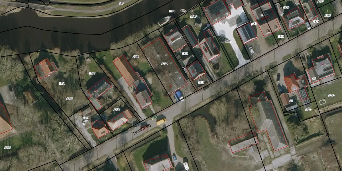 Het perceel waarop Hoofdweg 62 staat heeft een oppervlakte van 627 m². Dit is een groot perceel. De perceeloppervlakte wordt geregistreerd door het Kadaster. Gedetailleerde informatie over de maten van dit perceel kunt u vinden in het rapport Kadastrale kaart met maatvoering van Hoofdweg 62.