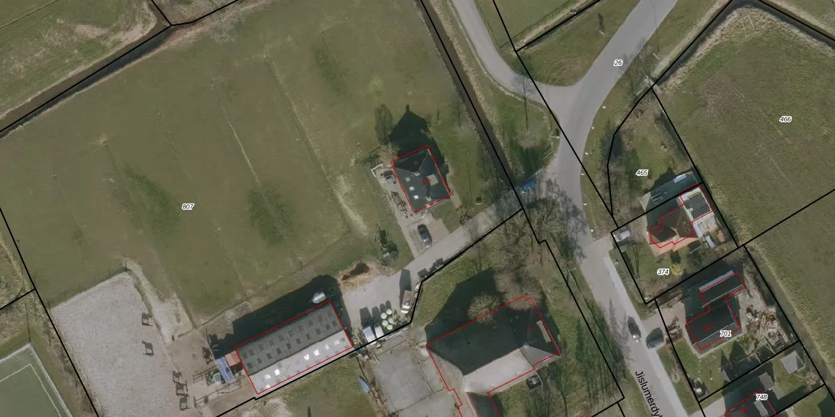 Het perceel waarop Jislumerdyk 17-A staat heeft een oppervlakte van 9555 m². Dit is een zeer groot perceel. De perceeloppervlakte wordt geregistreerd door het Kadaster. Gedetailleerde informatie over de maten van dit perceel kunt u vinden in het rapport Kadastrale kaart met maatvoering van Jislumerdyk 17-A.