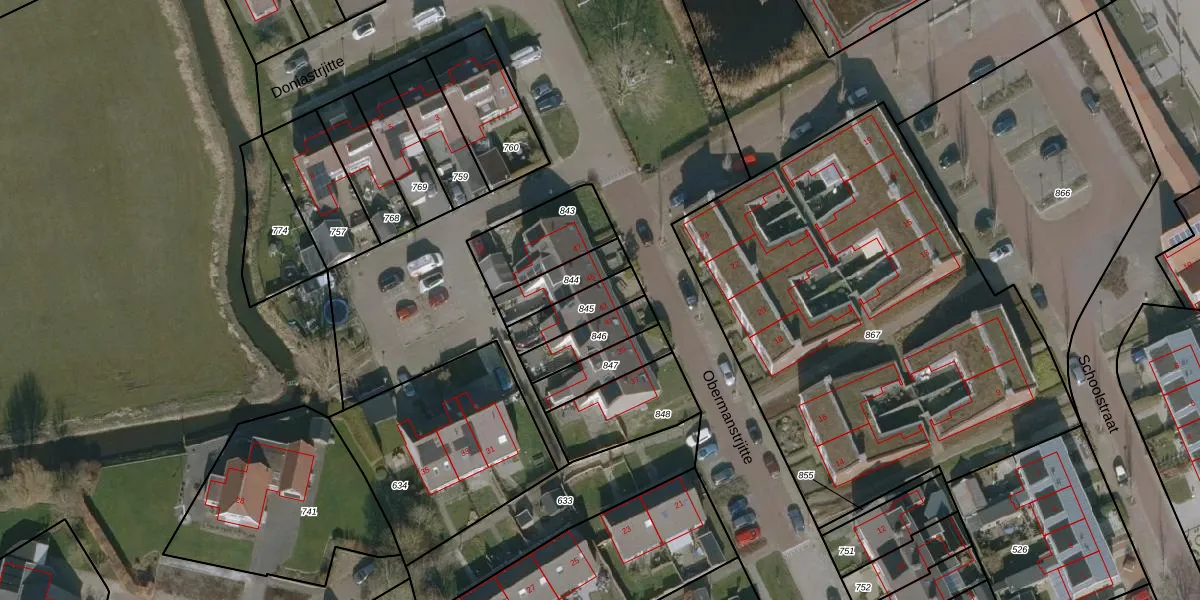 Gebruik de zoekbalk of klik op een perceel voor informatie over de adressen binnen dit perceel.