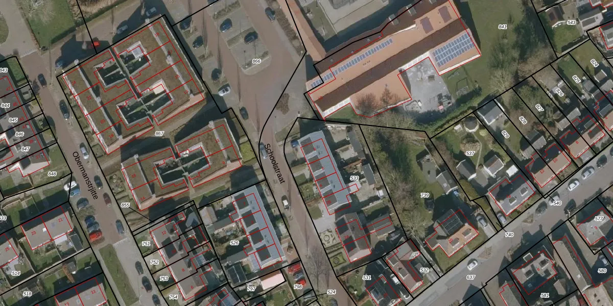 Het perceel waarop Schoolstraat 8 staat heeft een oppervlakte van 1265 m². Dit is een zeer groot perceel. De perceeloppervlakte wordt geregistreerd door het Kadaster. Gedetailleerde informatie over de maten van dit perceel kunt u vinden in het rapport Kadastrale kaart met maatvoering van Schoolstraat 8.
