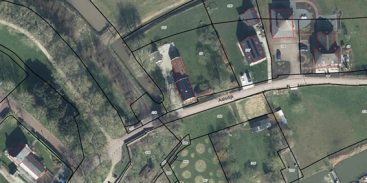 Aalsdijk 1 is gelegen op kadastraal perceel BRN00O20. Deze kadastrale aanduiding is uniek en wordt gebruikt door het Kadaster om eigendomsrechten en andere zakelijke rechten vast te leggen. Het perceel maakt onderdeel uit van de kadastrale gemeente Buren.