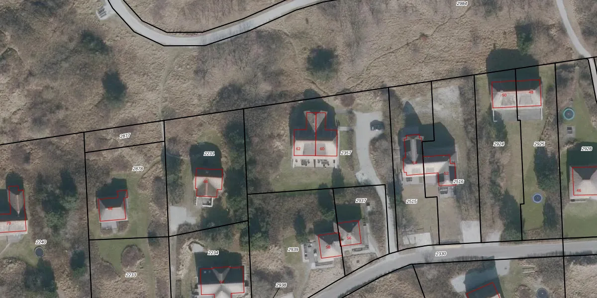 Bosrand 62 is gelegen op kadastraal perceel NES01B2357. Deze kadastrale aanduiding is uniek en wordt gebruikt door het Kadaster om eigendomsrechten en andere zakelijke rechten vast te leggen. Het perceel maakt onderdeel uit van de kadastrale gemeente Nes Ameland.